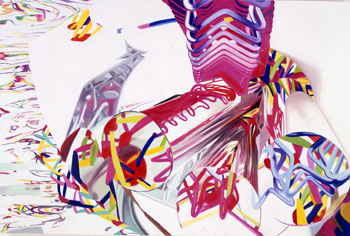 2001 Has solo exhibition including the 17' x 46' painting The Stowaway Peers Out at the Speed of Light (2000) and other Speed of Lightpaintings at the Gagosian Gallery, New York. Included in Les Années Pop: 1956-1968 at the Musée National d’Art Moderne, Centre Georges Pompidou, Paris.