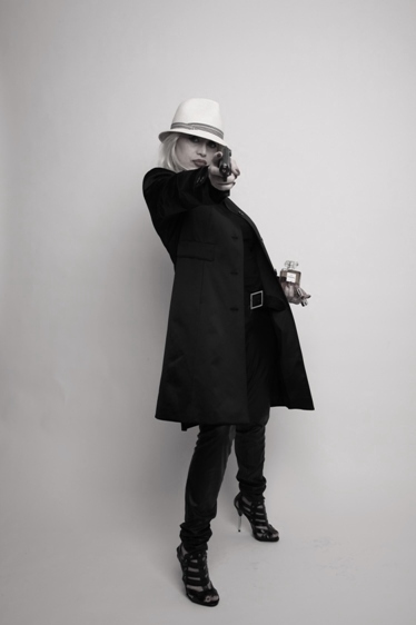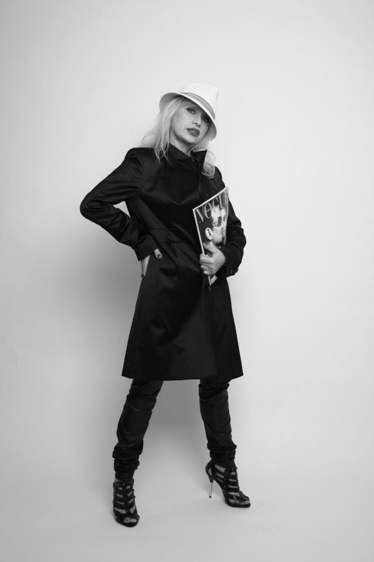 Einen Tag später. Manolo Blahnik macht 'nen Schuh. Silvia Kainka möchte auch wieder aufbrechen. " Mein Terminkalender ist voll! ", sagt sie mir am Telefon. " CU gleich, bin morgen wieder unterwegs. " Silvia muss geschäftlich nach Tokio fliegen. Vor ihrer Abreise besuche ich sie deswegen noch am Abend in ihrem Office. Ganz schön locker: Beine, " Apple "-Laptop, Lipstick " Jungle Red " von Nars und Schampus auf dem Tisch - Ladyboss Silvia geht ihren Job eher unkonventionell an. Von Kopf bis Fuß auf lässig eingestellt. Was für andere harte Arbeit ist, kostet sie nur ein Lächeln. " Ich habe es immer als großes Glück betrachtet, dass ich nicht morgens um neun im Büro auftauchen muss. Ich habe keinen klassischen Nine-to-five-Job, weil ich mir die Arbeit selbst einteilen kann. Das ist eine kleine Freiheit. Und das ist die Rebellion des Rock 'n' Roll: Ich kann tun und lassen, was ich will - und wann ich will. YEAH I LIKE THAT." Sie duftet nach " Opium " von Yves Saint Laurent. Silvia trägt ein schwarzes Lederkleid von Gucci und flippige Schuhe von Jimmy Choo. Wie fast immer trägt sie auch einen Hut. Denn Hüte sind ihr Markenzeichen. Weil Mrs. Vipywood und ihre Komplizinnen immer hippe Hüte tragen, nennt man die coolen Ladies schon" The Hat Pack!" Silvia lächelt: " Wie sagte schon Paris Hilton: Dress cutte wherever you go, life is too short to blend in. " Zu ihren Favoriten im Modebusiness zählen u..a. Jean Paul Gaultier und Vivienne Westwood: " Das sind einige der Designer, die in der drögen Modewelt Mut zur Extravaganz zeigen! " Modeverrückt war sie immer schon. Wie es der Zufall wollte, lernten wir uns dadurch kennen. Ich traf sie zum ersten Mal 2009 auf dem Weg zur Pret-a-Porter-Modenschau von Chanel in Paris. Ein gemeinsamer Freund und Fashion-Designer machte uns bekannt.